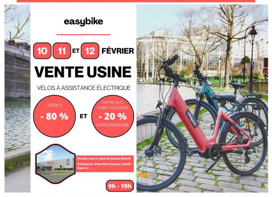 Jusqu’à -80 % de réduction sur une sélection de nos vélos à assistance électrique. Ce week-end, nous allons ouvrir les portes de notre usine pour vous présenter une sélection …